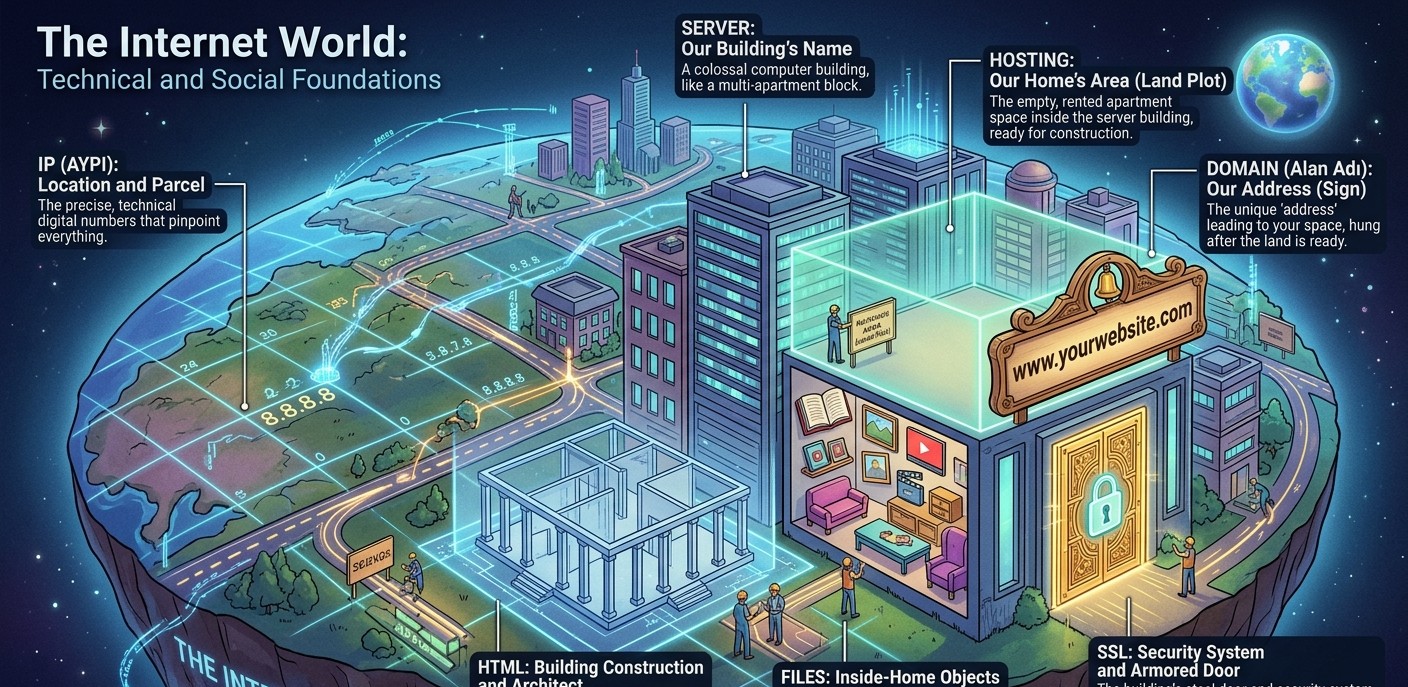 Hosting (Barındırma Hizmeti), bu sunucu (bina) içindeki size kiralanmış boş daire veya özel alandır. Burası henüz boştur ama kullanım hakkı size aittir. Yani inşaata başlamak için önce arsanızın/alanınızın hazır olması gerekir.